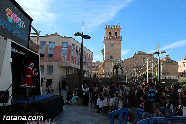 La Concejalía de Festejos del Ayuntamiento de Totana celebró hoy la actividad "Mañana Vieja" en la plaza Balsa Vieja, por vez primera, con un éxito de asistentes y un muy buen ambiente navideño de animación para dar la bienvenida al año 2016, en el que se dieron cita decenas de niños y niñas que disfrutaron de las numerosas actividades musicales programadas para la ocasión.