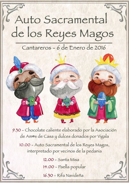 Totana Noticias El tradicional Auto Sacramental de los Reyes Magos tendrá lugar el próximo 6 de enero en Cantareros 04/01/2016 El tradicional Auto Sacramental de los Reyes Magos tendrá lugar el próximo 6 de enero en Cantareros Estará interpretado por vecinos de la pedanía totanera Fuente: Totana.com