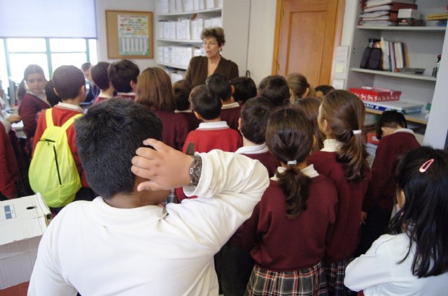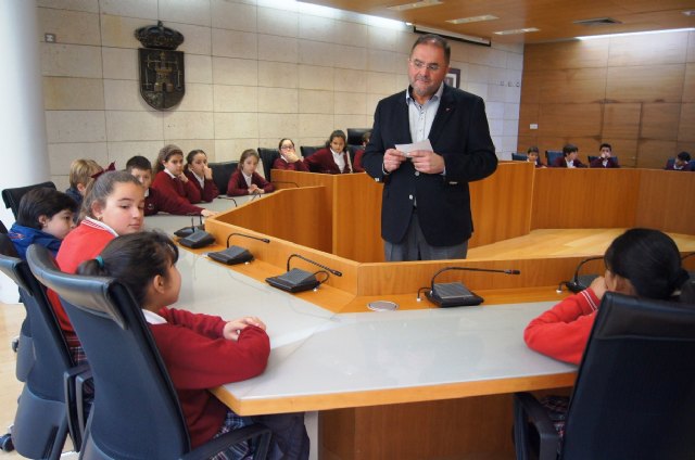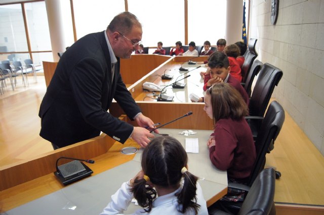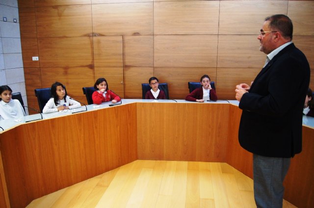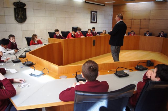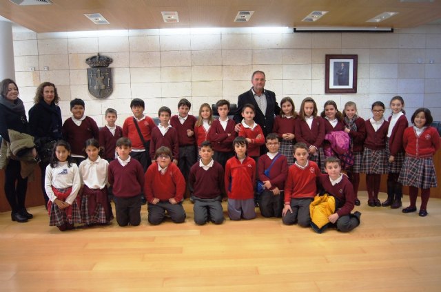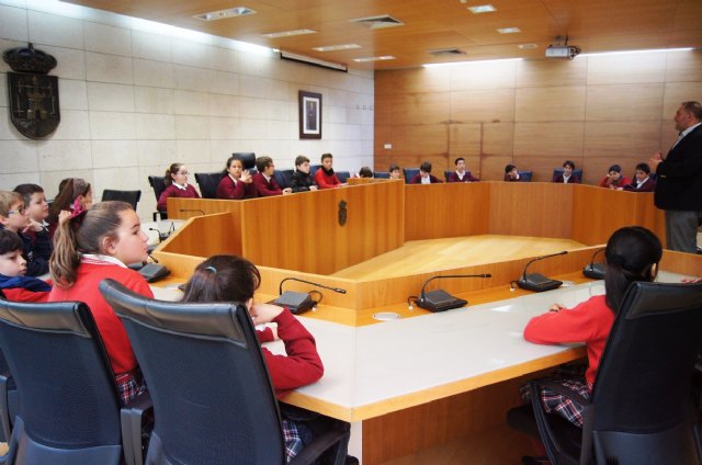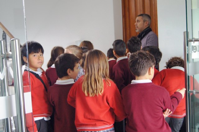 Alumnos de Educación Primaria del colegio "Reina Sofía" de Totana han abierto el programa "Conoce tu ayuntamiento", una iniciativa con la que se pretende ofrecer a los centros de enseñanza de Totana, dentro de su calendario de actividades extraescolares, la posibilidad de que los alumnos de Educación Primaria puedan visitar el principal edificio consistorial.
