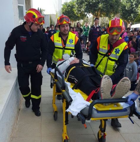 En el mismo participaron escolares y profesores, guiados por voluntarios de la Agrupación de Protección Civil, Policía Local, los servicios sanitarios de emergencia y la unidad canina K-9.