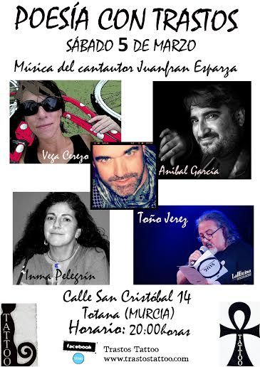La Concejalía de Cultura, en colaboración con la empresa "Trastos Tattoo", organiza mañana sábado, 5 de febrero, a partir de las 20:00 horas, el recital de poesía "Poesía Con Trastos", que se celebrará en este establecimiento, en la calle San Cristóbal, número 14.