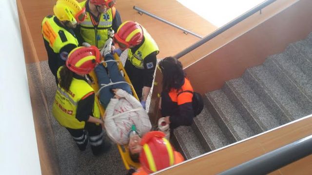 En el mismo participaron escolares y profesores, guiados por voluntarios de la Agrupación de Protección Civil, Policía Local, los servicios sanitarios de emergencia y la unidad canina K-9.