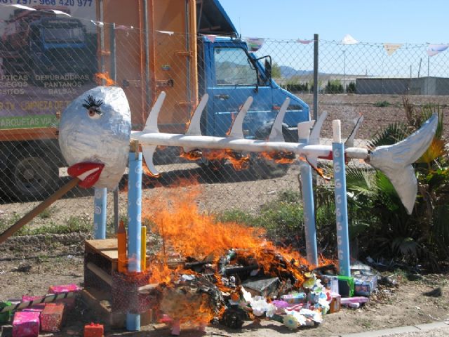 Los alumnos del centro, junto con el monitor de artes plásticas, Paco Salzedo, han preparado una falla que representa a una sardina, y que ha sido quemada después de un desfile por los alrededores del Centro, al que se han sumado los usuarios así como el alcalde, Juan José Cánovas, y las concejalas Ana María Cánovas, Javier Baños y Antonia Camacho.
