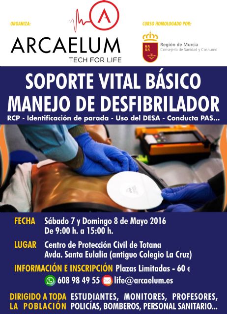 La Concejalía de Desarrollo Económico informa de que los próximos 7 y 8 de mayo, el Centro de Protección Civil de Totana, acogerá el curso de Soporte Vital Básico (SVB) conmanejo y uso de desfibriladores semiautomáticos externos (DESA). Dicho curso se impartirá en horario de mañana de 9:00 a 15:00 horas y tiene plazas limitadas.