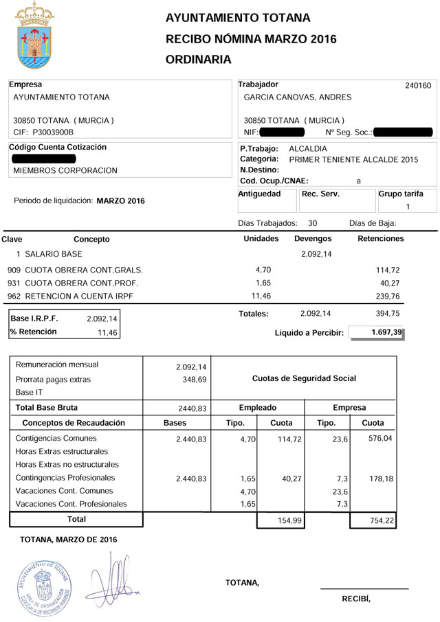 Finalmente, desde el Grupo Municipal Socialista siendo coherentes con nuestra filosofía política manifestada en el acuerdo de gobierno, y en las sucesivas mociones presentadas en el pleno que desarrollan el pacto de gobierno, vamos a publicar también las retribuciones que percibimos por desarrollar nuestra acción política en las áreas de Agricultura y Caminos (Andrés García Cánovas), Servicios a la Ciudad (Víctor Balsas Cánovas), Urbanismo (Carlos Ballester), Hacienda (Ana Cánovas), Deportes y Sanidad (Isa Molino) y Recursos Humanos (Gertrudis Ruiz).