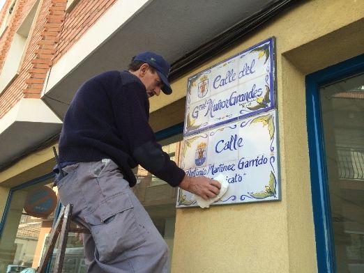 Operarios municipales han colocado los rótulos en cerámica, como los del resto del callejero local, con los nuevos nombres de las calles; que durante un tiempo convivirán con los antiguos para hacer la transición más fácil a vecinos residentes y a los servicios implicados, sobre todo, a Correos.