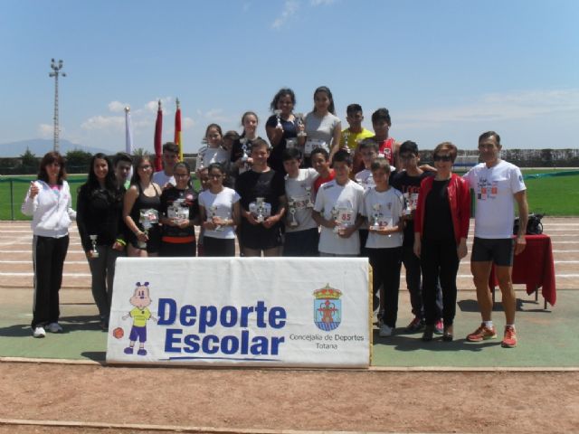 Esta fase local de Atletismo concluyó con la entrega de trofeos a los tres primeros clasificados de cada una de las categorías, por parte de la Concejal de Recursos Humanos del Ayuntamiento de Totana, Gertrudis Ruíz Tudela. Además, los alumnos mejor clasificados en esta competición escolar tendrán la oportunidad de participar en la Final Regional de Atletismo de Deporte Escolar, que organiza la Dirección General de Deportes de la Región de Murcia, y que tendrá lugar los próximos días 20 y 21 de Mayo, en Cartagena.