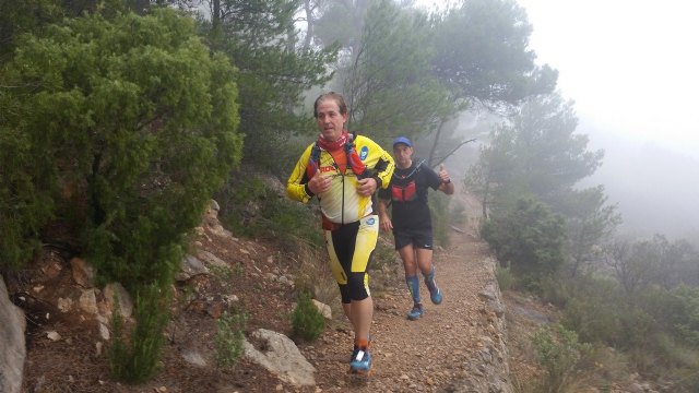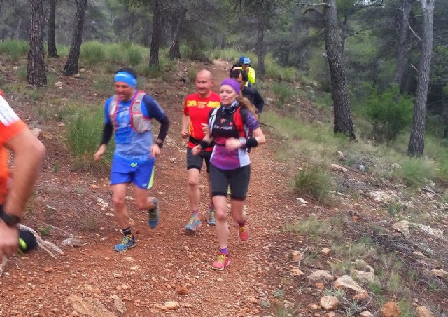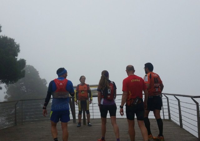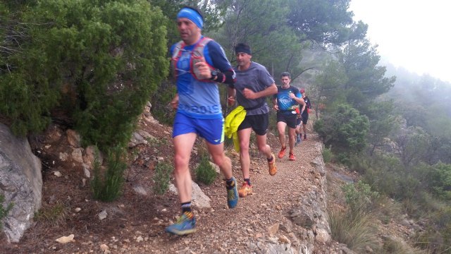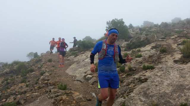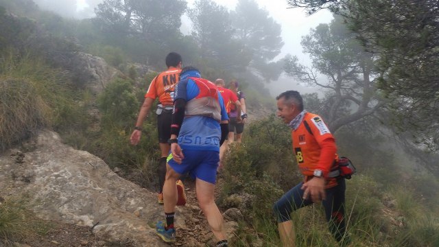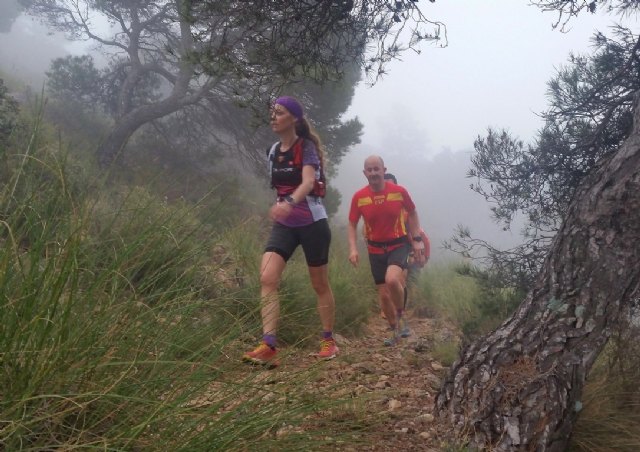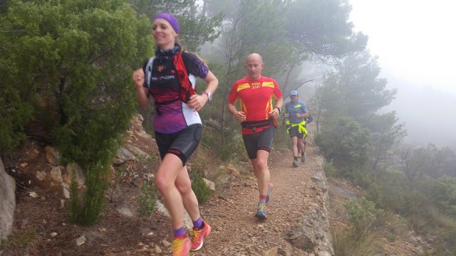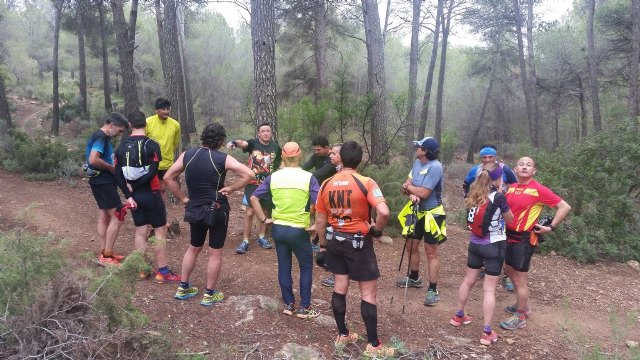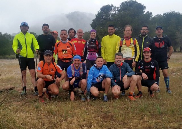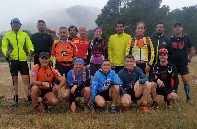 Sobre las 8:30h comenzaron la ruta contando con la presencia de amigos venidos de poblaciones como Lorca, La Hoya o Alhama, con una mañana perfecta para correr por la sierra, con fina lluvia en algún tramo y niebla, ideal para disfrutar de la ruta.