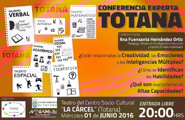 La Conferencia "Experta" sobre Altas Habilidades tendrá lugar mañana 1 de junio en el Centro Sociocultural de la Cárcel