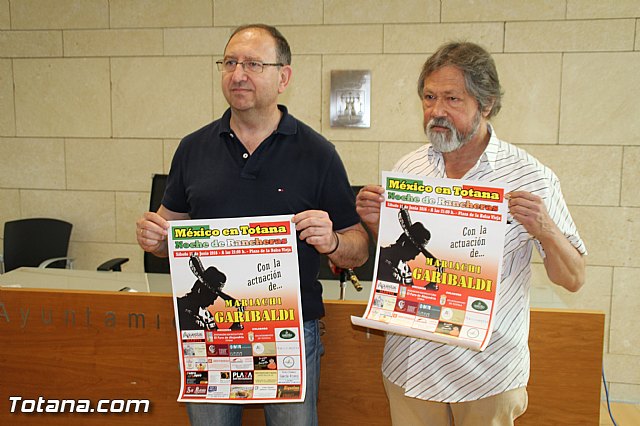 El espectáculo "México en Totana. Una noche de rancheras" ha sido presentado por el concejal de Festejos del Consistorio totanero, Agustín Gonzalo Martínez; el presidente de la Asociación Sociocultural Faro de Alejandría, Pedro Costa; el cantante del "Mariachi Garibaldi", Jorge Torres, y el único componente totanero del mismo, Alberto Romero.