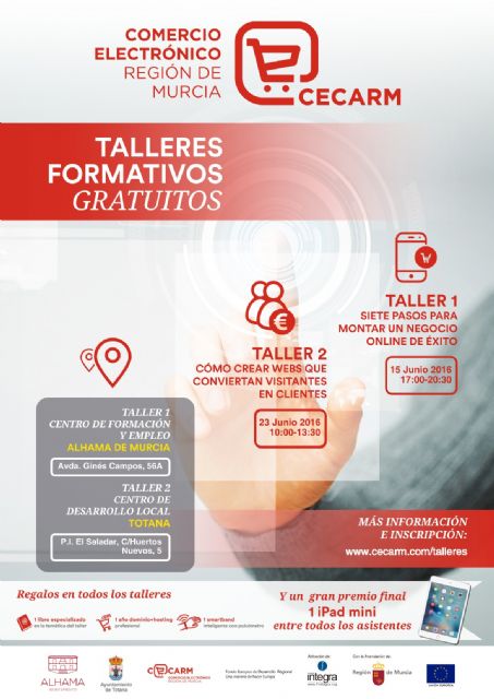 La asistencia a los talleres es totalmente gratuita y para asistir es necesario realizar la inscripción a través de la web: www.cecarm.com/talleres ó llamado al 968425003 (Centro de Desarrollo Local, c/ Huertos Nuevos, 5. Pol. Ind. El Saladar. Totana).