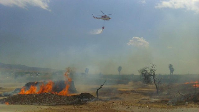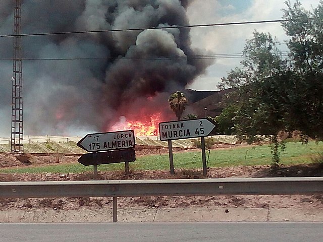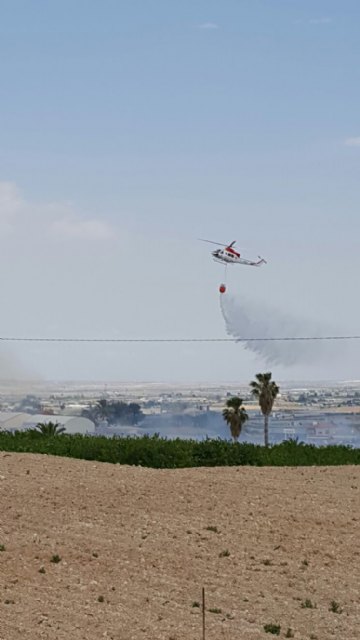 En el dispositivo movilizado para apagar el incendio se dieron cita efectivos de bomberos del parque de Lorca y Alhama-Totana, el helicóptero contra incendios del 112, voluntarios de Protección Civil, Policía Local de Totana y Guardia Civil.