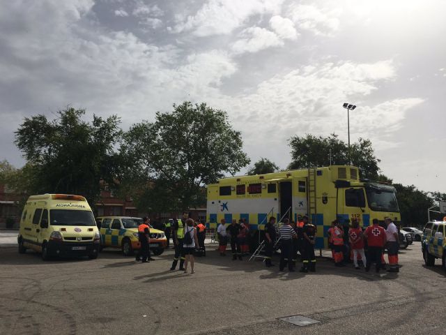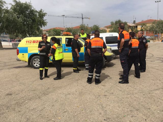 Los Servicios de Emergencias municipales, entre los que se encuentran efectivos de Protección Civil y Policía Local en Totana, participaron hoy en el dispositivo de coordinación de emergencias y seguridad con la simulación de un accidente químico en una factoría del polígono industrial "El Saladar" de Totana, y la puesta en marcha del operativo en diferentes puntos de la localidad.