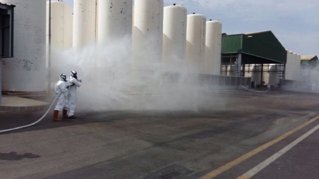 La Consejería de Presidencia, a través de la Dirección General de Seguridad Ciudadana y Emergencias, comprobó hoy la eficacia del Plan de Emergencia Exterior del Sector Químico en Totana, donde se simuló un accidente en la empresa “Fuentes Fertilizantes”, junto al parque industrial.