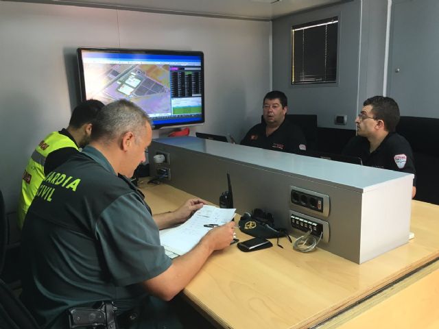 La Dirección General de Seguridad Ciudadana y Emergencias desplazó a Totana su Unidad Móvil de Mando, donde técnicos del Servicio de Protección Civil coordinarán el desarrollo del ejercicio. Estos recursos fueron ubicados en la plaza que sirve de recinto ferial, entre las calles San Francisco de Asís y Ministro Fernández Ordoñez de esta localidad.