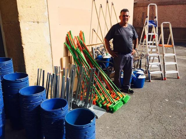 La empresa concesionaria del servicio ha adquirido numeroso material nuevo para su utilización por parte de los usuarios, como son decenas de cubos, recogedores, escobas, cepillos, fregonas y escaleras.