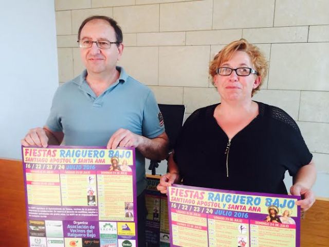 Las fiestas de El Raiguero Bajo se celebrarán del 22 al 24 de julio en honor a Santiago Apóstol y Santa Ana, si bien este próximo sábado, 16 de julio comienza el programa de forma oficial con la V Marcha Nocturna de esta diputación, en el que se repartirán bocadillos para los participantes y público asistente, a partir de las 21:30 horas.