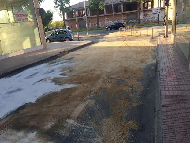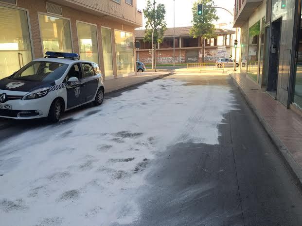 La avería de un camión ha provocado el derramamiento de combustible en la calzada de la calle Alhama, que ha obligado a cortar el tráfico durante varias horas esta mañana hasta que los operarios de la brigada de la Concejalía de Servicios a la Ciudad han solucionado el problema.