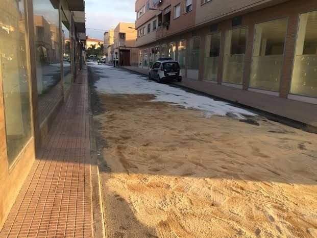 Éste se trataba de un camión articulado que había sufrido la rotura de su circuito hidráulico, y que derramó unos doscientos litros de aceite sobre esta vía urbana y otras adyacentes de la urbanización "El Parral".