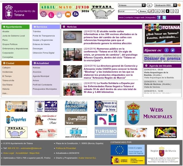 El Ayuntamiento de Totana adjudicó a principios del verano del año pasado a la mercantil "Avatar Internet, S.L.L." los servicios de rediseño y mantenimiento de los portales municipales, para un período de dos años y otros dos prorrogables, por un importe de 22.990 euros.