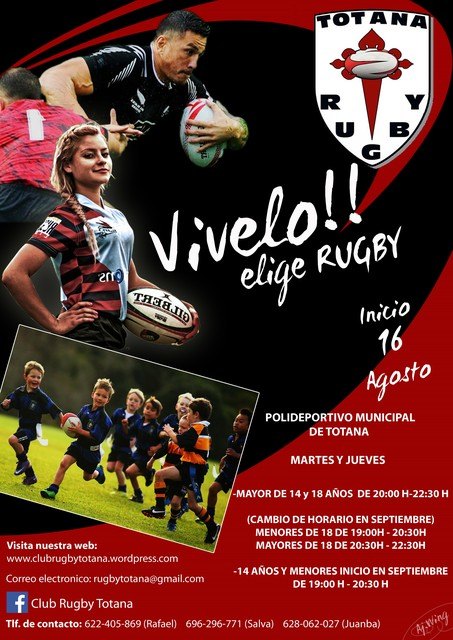 El Club de Rugby de Totana anuncia, que el martes 16 de Agosto comienzan sus entrenamientos para todas las categorías mayores de 14 años, incluido séniors y femenino. Las sesiones de preparación para la próxima temporada serán, todos los martes y jueves en el campo de césped natural del polideportivo municipal 6 de diciembre, de las 20:00 a 22.30 horas.