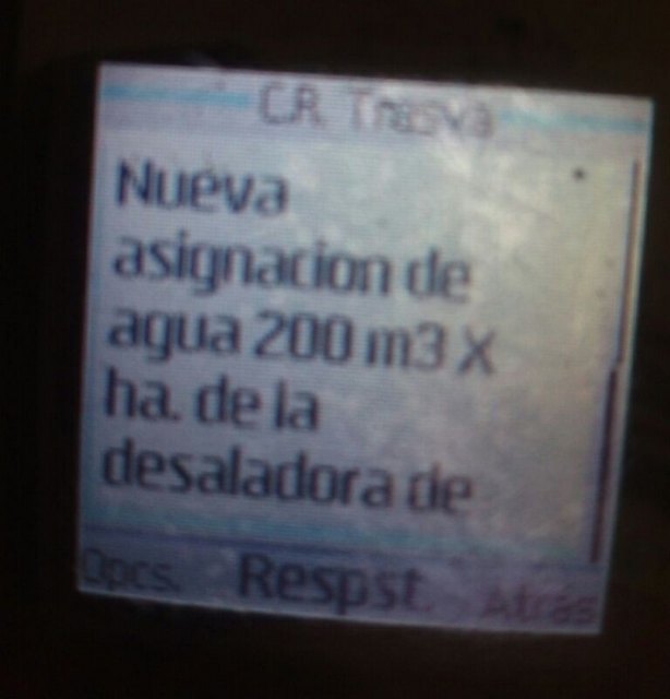 A esto nos condenan nuestros politicos !!! Cuando podriamos comprarla a 0.36 ctms no quisieron y ahora nos la meten a 0.60ctms y a tragar ...lo del Raiguero se firmara cuando haya Gobierno antes NO !!!por que como PAS y Todo su EQUIPO luchando como luchan por los pequeños agricultores van a dejarlos a la merced de los grandes ?? Pues si señores no espereis comprarla a menos Nos Han Engañado !!!y la compraremos al doble que Lorca y desapareceremos los pequeños para que grandes empresas monopolicen el Campo en detrimento de las pequeñas explotaciones que los pequeños no le inreresamos a nadie y lo que se pretende es grandes extensiones se hagan con el Poder del AGua y la Comercializacion internacional y a los pequeños que nos den por donde amargan los pepinos ...y Nuestros politicos ni si quiera nos defienden .....que no podemos sobrevivir ......
