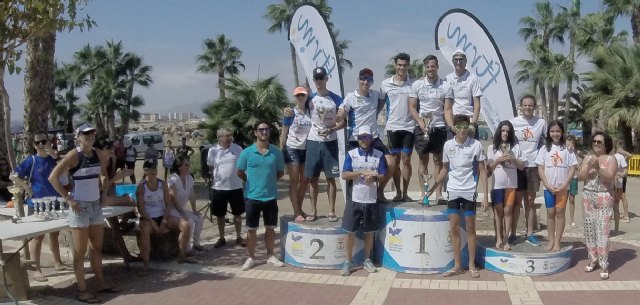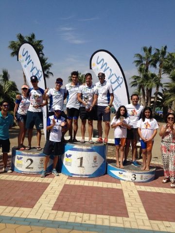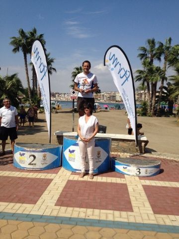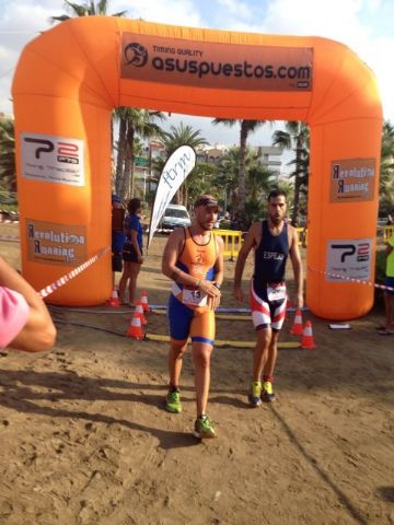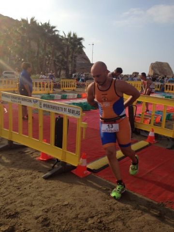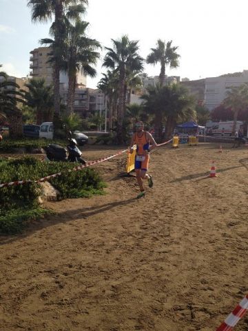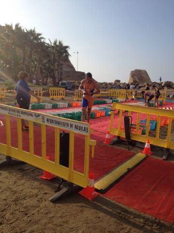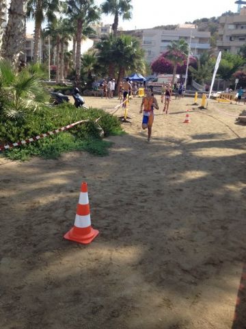 La prueba de Acuatlón consiste en 3 segmentos al igual que el triatlon pero cambiando el formato, siendo el primero segmento la carrera a pie donde se recorren 2.500 metros, después viene el segmento de natación con 1.000 metros y se finaliza con otro segmento de carrera a pie con otros 2.500 metros. En esta ocasión el circuito fue bastante duro en la carrera a pie, ya que fue íntegramente por la arena de la playa.