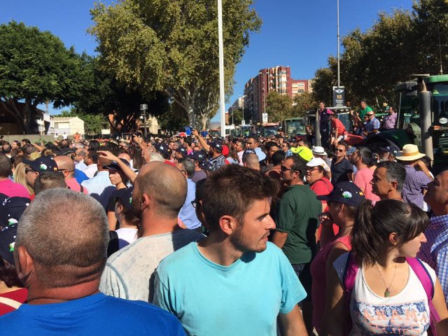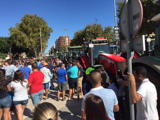 El alcalde de Totana con los agricultores murcianos ante la Asamblea Regional en Cartagena