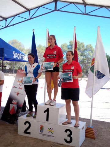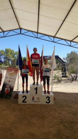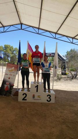 En cuanto a resultados, tenemos a Rodrigo Molino 4º en Open-Amarillo; y a Juana Sánchez 7ª y Joaquín Martínez 9º en Open-Rojo. En cuanto a Categorías oficiales, el club llenó el Pódium en la categoría D-Cadete, con María Cortijos Guillen 1ª, María Molino 2ª y Daniela Hernández Vidal 3ª,y a pocos minutos Marta Martínez finalizó 5ª. En D-SeniorA, Alba Martínez se llevó la primera posición del pódium. En SeniorB, contamos con una nutrida representación: Inmaculada Díaz quedó 1ª, Raquel Tudela 3ª, y su hermana Cristina Tudela 4ª a pocos minutos; Mari Carmen Ruiz Galián terminó 8ª y Marta Navarro 9ª. En Veteranas-A Carmen Martínez Villanueva terminó 3ª; y por último, en D-Elite, María Cortijos Sequera se llevó el primer puesto, María Teresa Barceló el segundo y Rosa Sánchez el cuarto.