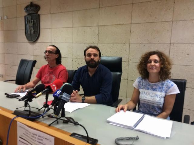 El concejal de Bienestar Social y Dependencias, Javier Baños, acompañado por la directora del Centro de Día, Ana García Vera, y del Centro de Salud Mental de Lorca-Águilas, Fernando Lojo, han presentado los actos que se van a organizar en aras de concienciar a la sociedad de las necesidades de estas personas con trastorno mental.