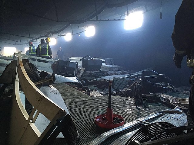 A las 9.04 horas, el sargento al mando de la extinción informa de que el incendio está controlado, pero que la mayoría de los animales que había en el interior de la nave (unos 700 lechones) han muerto.