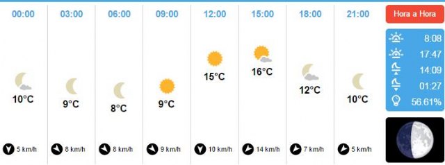 Poca nubosidad a primeras horas de la mañana que irá aumentando por la tarde y cielo cubierto por la noche, si bien podremos disfrutar de tiempo mayormente soleado durante el trascurso de la romería.