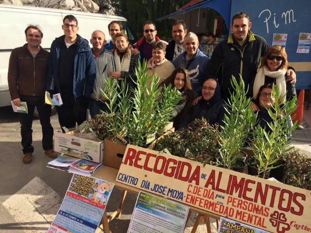 Usuarios de los centros de día con discapacidad de Totana realizaron hoy una actividad de recogida de juguetes y alimentos no perecederos coincidiendo con el mercadillo semana, dentro de la campaña promovida por ellos y que vienen desarrollando hasta el 22 de diciembre.