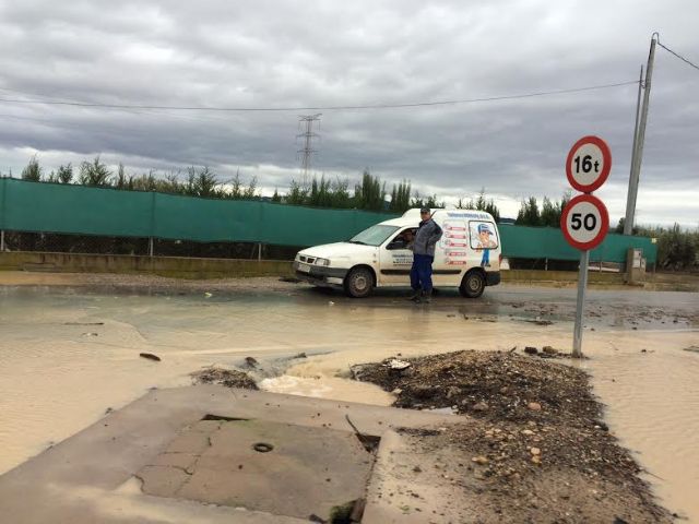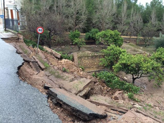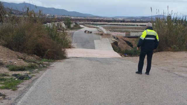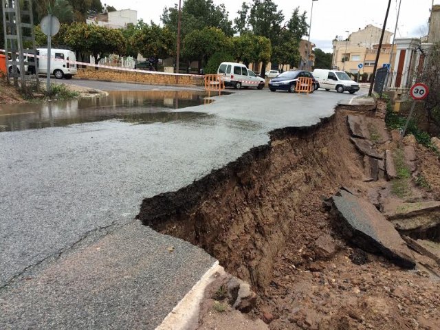 También se cortó al paso de vehículos un tramo de la Carretera de La Huerta por el corrimiento de tierras que ha producido daños materiales en la calzada, a la altura de la rotonda de la Cruz de la Misión, desde los huertos de La Cruz al de Gray, por lo que se desvía por el Camino de los Depósitos hasta la rotonda de El Rulo.