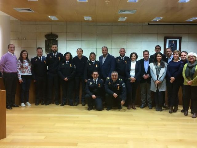 El alcalde de Totana, Juan José Cánovas, y el concejal de Seguridad Ciudadana, Agustín Gonzalo Martínez, hicieron entrega ayer de las condecoraciones a siete voluntarios de Protección Civil en esta localidad por su trayectoria y a la constancia en esta agrupación.