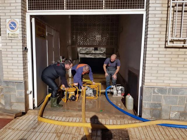 Protección Civil de Totana coopera en las labores de achique de agua en viviendas en Los Alcázares tras las inundaciones