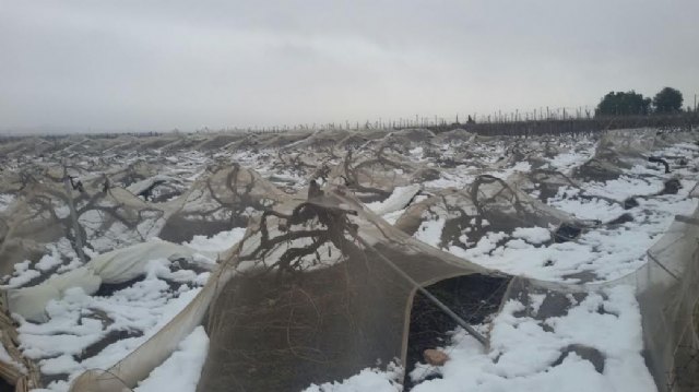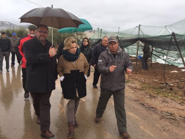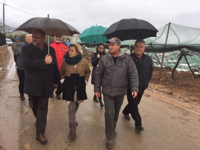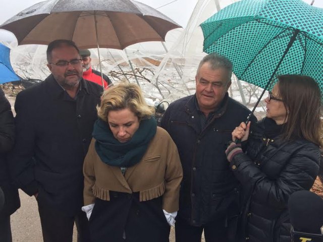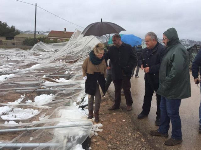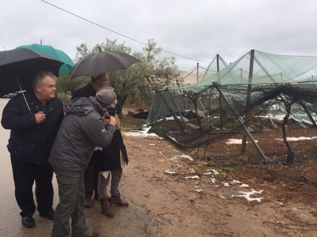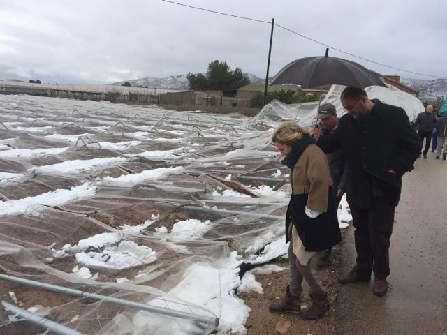 La consejera de Agua, Agricultura y Medio Ambiente, Adela Martínez Cachá, y el alcalde de Totana, Juan José Cánovas, han visitado hoy los parrales de uva de mesa damnificados en diferentes zonas de la diputación totanera de El Raiguero, a consecuencia del temporal de nieve y que ha provocado numerosos daños materiales en estas infraestructuras en una superficie que está todavía por precisar.