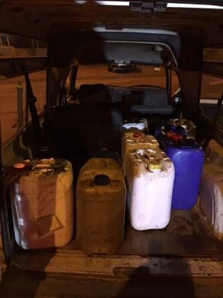 Los agentes localizaron en el interior de la furgoneta numerosos objetos presuntamente robados entre los que se encontraban los bidones llenos de gasoil, e instruyeron diligencias por un supuesto robo que fueron entregadas en el cuartel de la Guardia Civil de Totana.