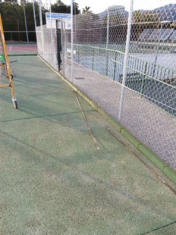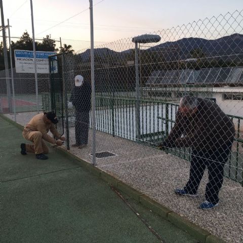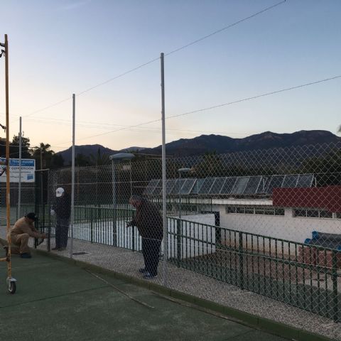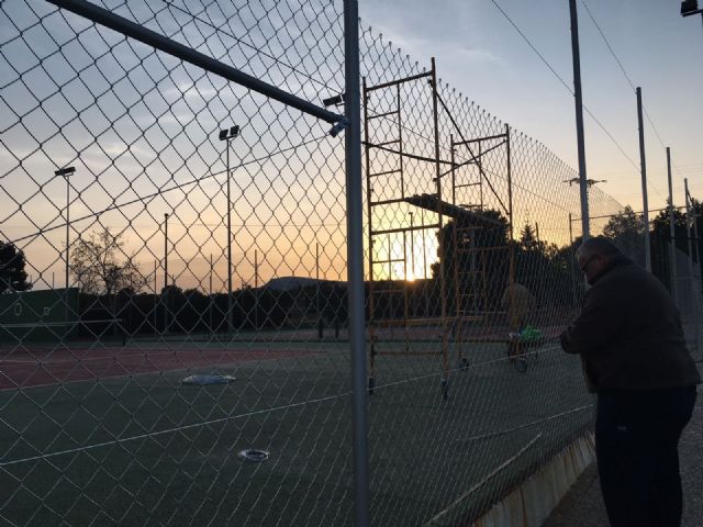 La Concejalía de Deportes del Ayuntamiento de Totana está acometiendo durante estos días trabajos de renovación del vallado perimetral en las dos pistas de tenis existentes en el Polideportivo Municipal "6 de Diciembre" con el fin de mejorar los servicios públicos que se prestan en estas instalaciones municipales.