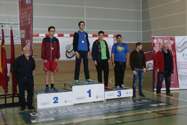 El resto de la participación totanera también consiguió subir al pódium, ya que Juan Miguel González Ruiz (IES Prado Mayor), consiguió el tercer puesto en la categoría infantil masculino, tras perder en semifinales con Alejandro Extremera, del IES Ben Arabi de Murcia, que a la postre sería el campeón; y por ultimo, en la categoría cadete masculino, Casey Clatworthy (IES Juan de la Cierva) termino en el segundo puesto en la modalidad individual, tras perder en la final con Carlos Sagaseta, del IES Juan Carlos I de Murcia, y también el IES Juan de la Cierva consiguió el