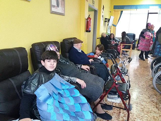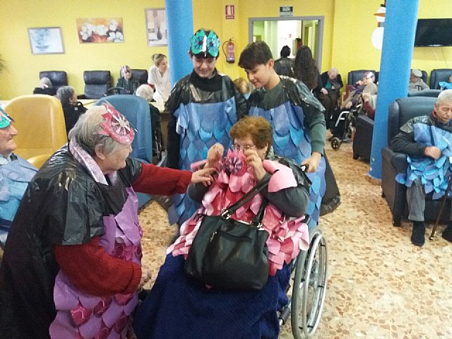 "Disfraces caseros, hechos con mucho cariño y esfuerzo en la Residencia, nos esperaban junto a nuestros mayores para compartir la tarde", destaca Paqui García del Departamento de Orientación del IES Prado Mayor de Totana.