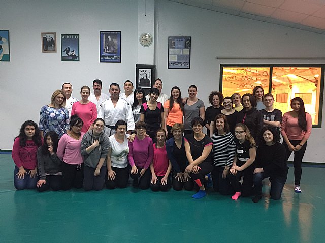 Asistieron al taller más de 30 mujeres, que pasaron una tarde muy divertida aprendiendo las distintas técnicas de defensa personal que varios monitores del Club Aikido de Totana pusieron en práctica.