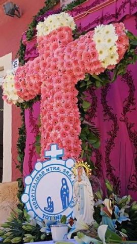El año pasado, según la tradición del pueblo, la delegación de Lourdes robó la Cruz y según la tradición quien la roba no tiene que decirlo hasta un mes antes del año próximo . Y la delegación de Totana fue la que hizo el robo; "por tal motivo este año hemos sido lo encargados de regalar las flores y realizarla", destacan desde la delegación totanera.