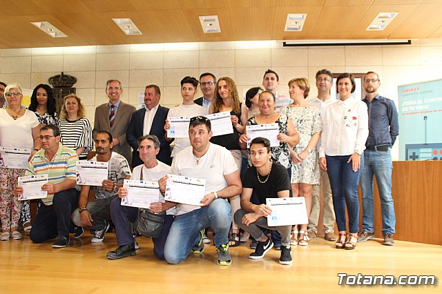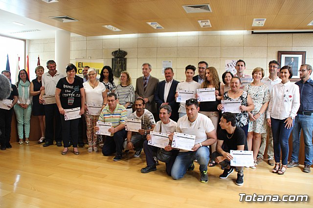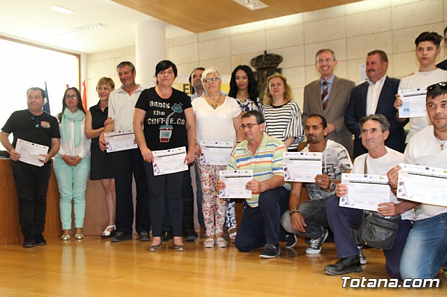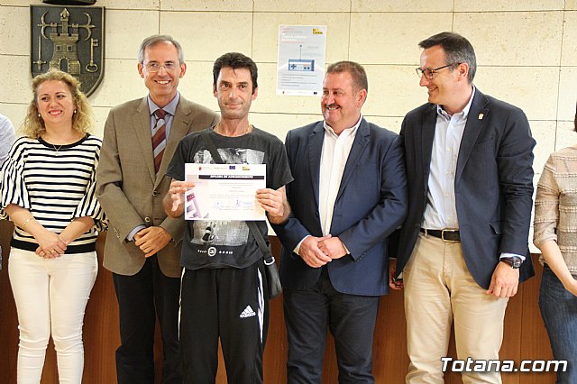 El secretario general de la Consejería de Familia e Igualdad de Oportunidades, Manuel Marcos Sánchez, clausuró hoy los cursos 'Labor: Un paso hacia la empleabilidad' y 'Labor 2.0: Garantía Juvenil', junto con los alcaldes de Totana, Juan José Cánovas, y de Alhama de Murcia, Diego Conesa, y asistió a la entrega de diplomas.