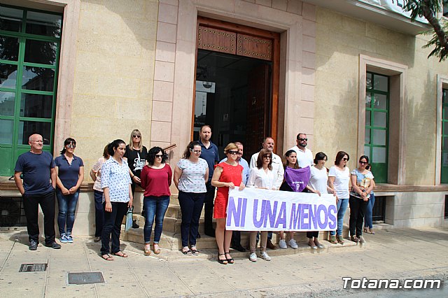 Autoridades locales y trabajadores municipales han guardado esta mañana un simbólico minuto de silencio como muestra de respeto, repulsa y condena ante el último caso de violencia machista en la Región, ocurrido este domingo en Molina de Segura.
