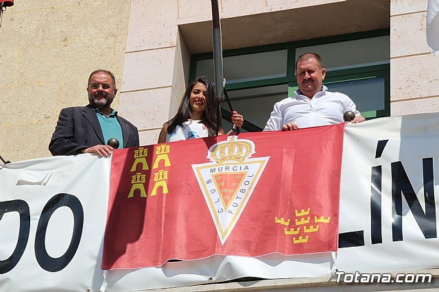 La iniciativa se ha llevado a cabo en el balcón de la fachada principal del Consistorio totanero ante las peticiones de aficionados y abonados del Real Murcia residentes en el municipio de Totana.