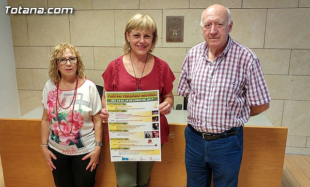 La concejal de Personas Mayores, Antonia Camacho, el presidente del Centro Municipal de Personas Mayores de la plaza Balsa Vieja, Jerónimo Martínez Gómez, y la vocal Pepi Crespo García, presentaron el programa de actividades, que este año básicamente se concentran en la plaza de la Balsa Vieja de esta localidad.