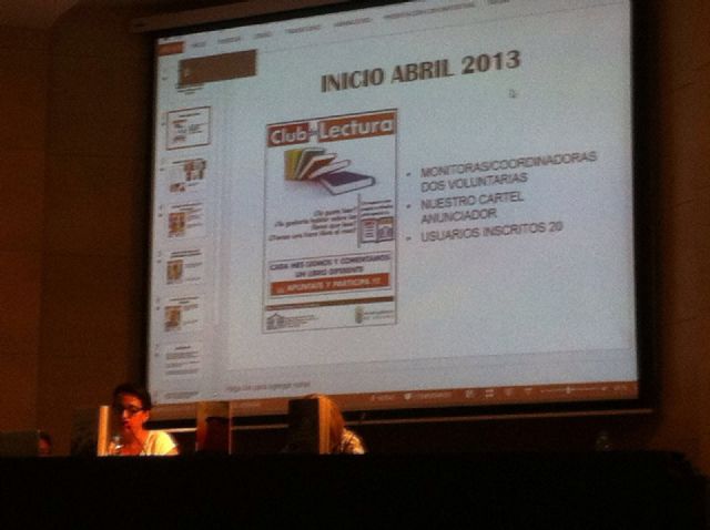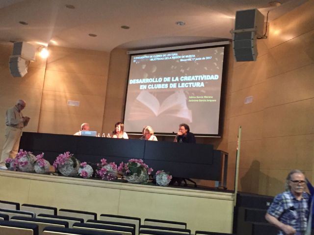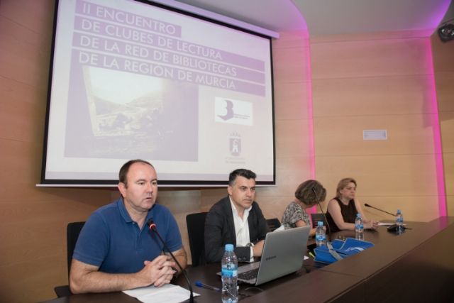 Representantes del Club de Lectura de Totana asisten al "II Encuentro de Clubes de Lectura de la Región de Murcia" celebrado el pasado sábado en Mazarrón, y en el que Isabel Román, bibliotecaria de la Biblioteca Municipal "Mateo García" y coordinadora del club de lectura totanero, llevó a cabo una ponencia en la que explicó cuál ha sido la evolución del club de lectura desde su origen y hasta la fecha.