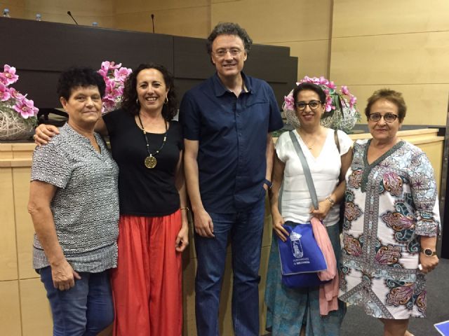 El director general de Bienes Culturales, Juan Antonio Lorca,y el concejal de Cultura del Ayuntamiento de Mazarrón, Pedro Martínez, fueron los encargados de inaugurar la jornada, en la que estuvieron presentes, Isabel Román, bibliotecaria y coordinadora del club de lectura que se gestiona desde la Biblioteca Municipal "Mateo García", Silvia Magdalena Patrissi, Gina Cánovas y Rosario Arcas, socias del club totanero.