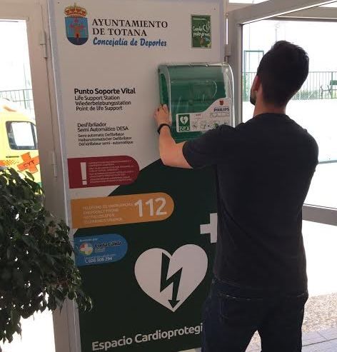 La Concejalía de Deportes informa que ya han quedado instalados los espacios cardioprotegidos con desfibriladores en todas las instalaciones deportivas municipales del municipio de Totana, después de que técnicos de una empresa especializada los haya colocado en lugares específicos cara vista.